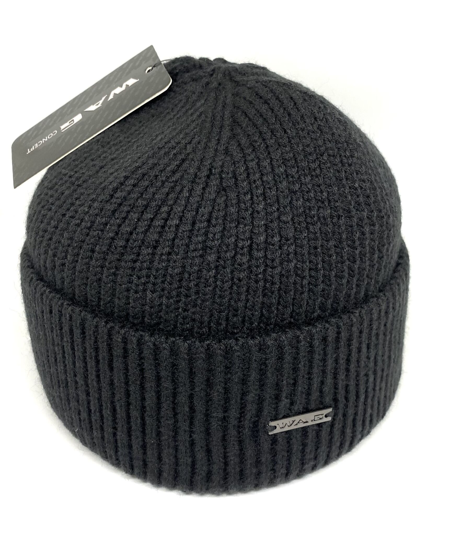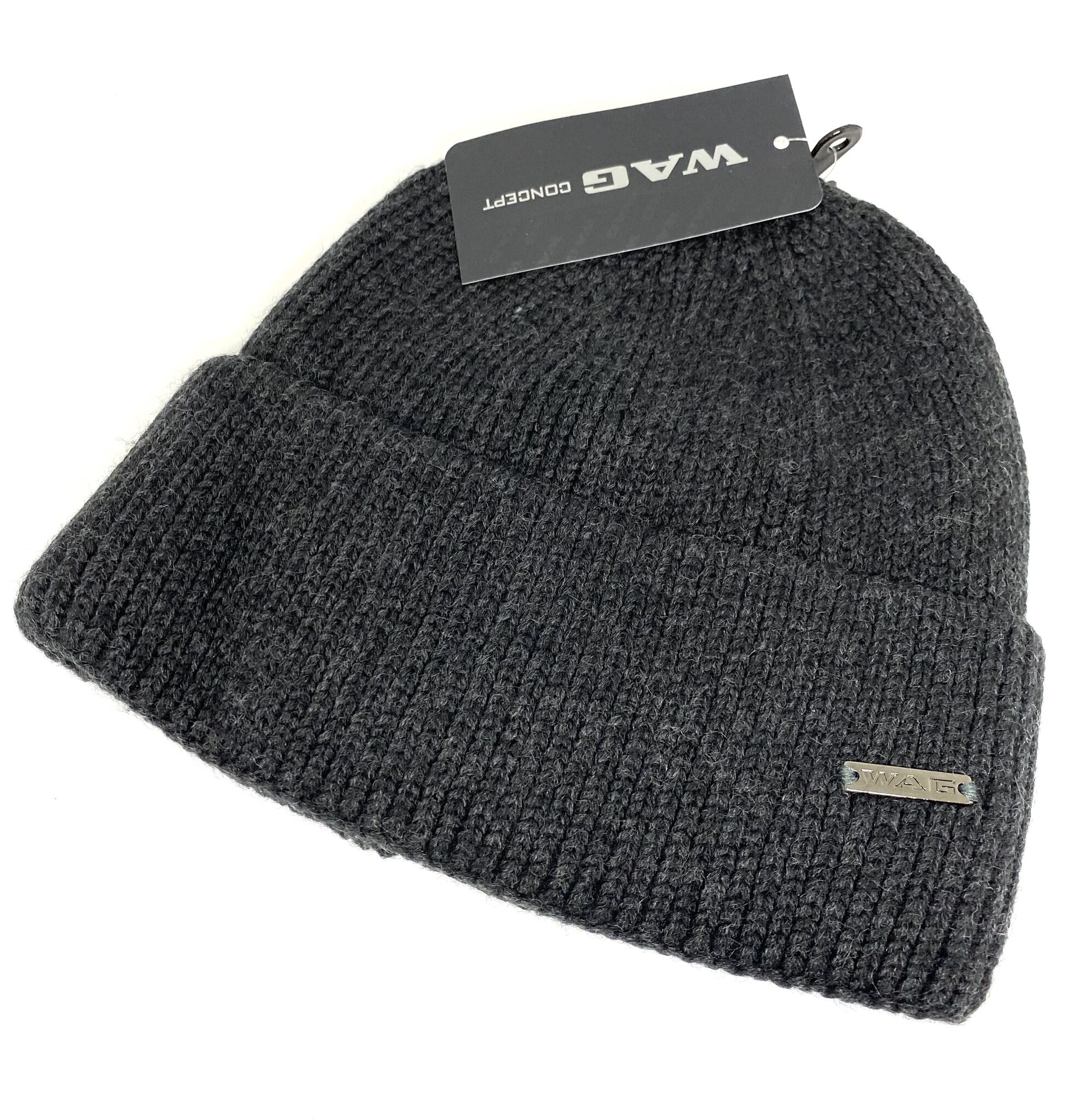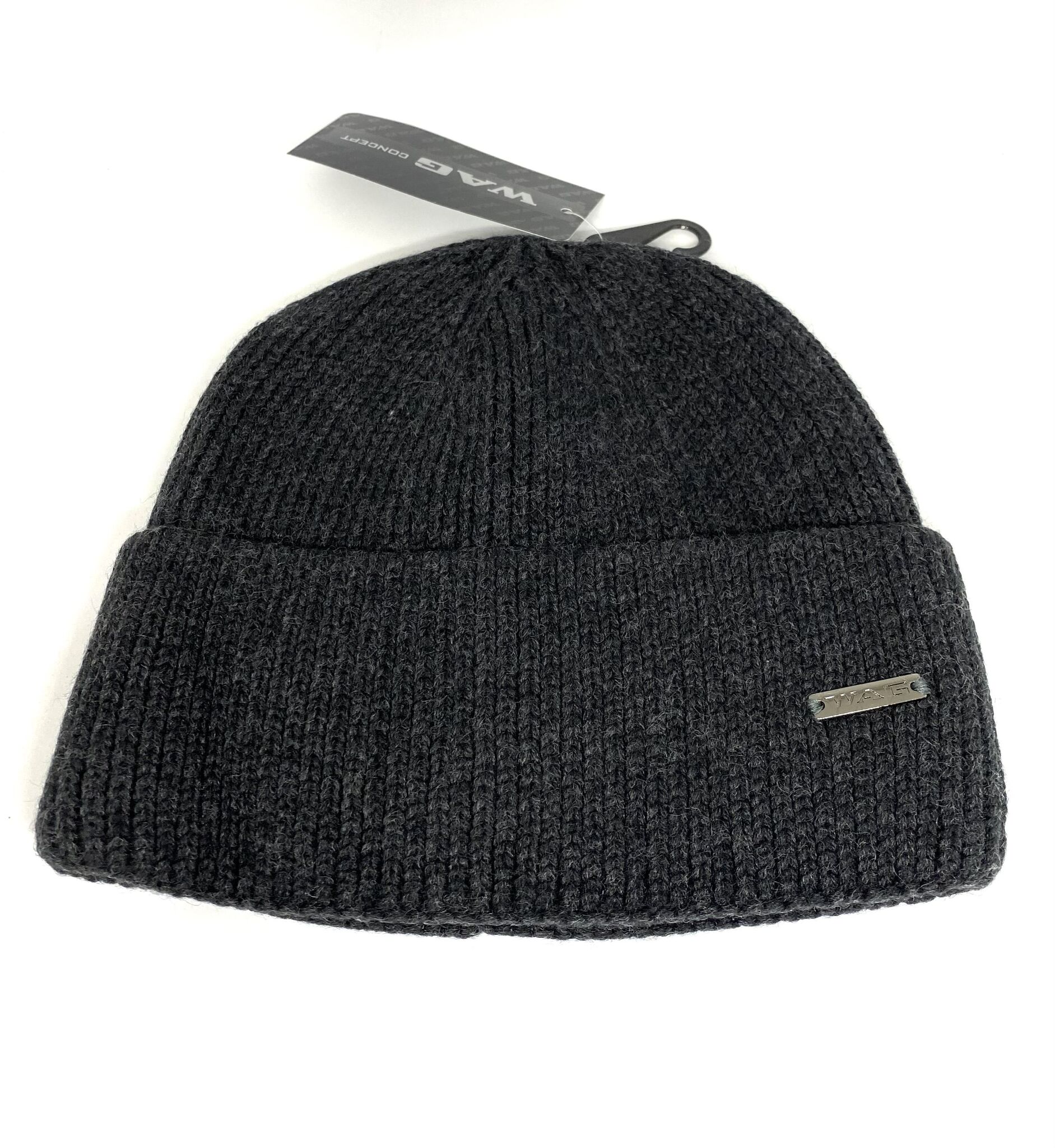 Мужская стильная шапка классическая Wag по голове. Рельефная смешанная вязка из качественной шерсти, двойная с широким практичным отворотом. Металлический логотип фирмы Wag.
