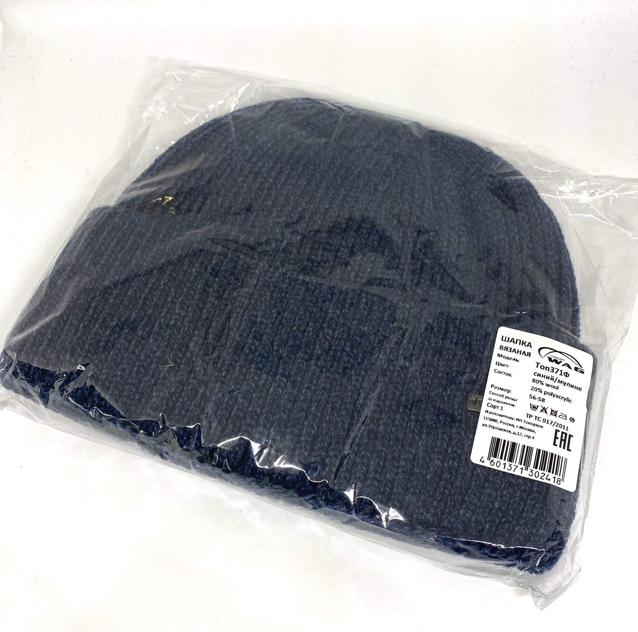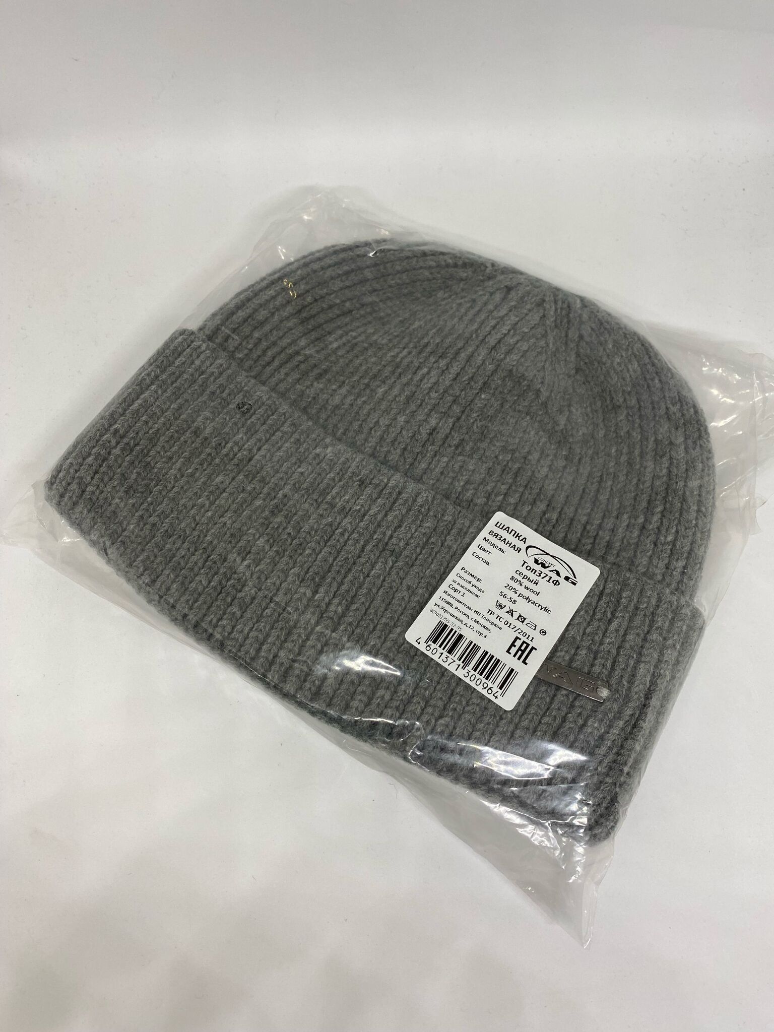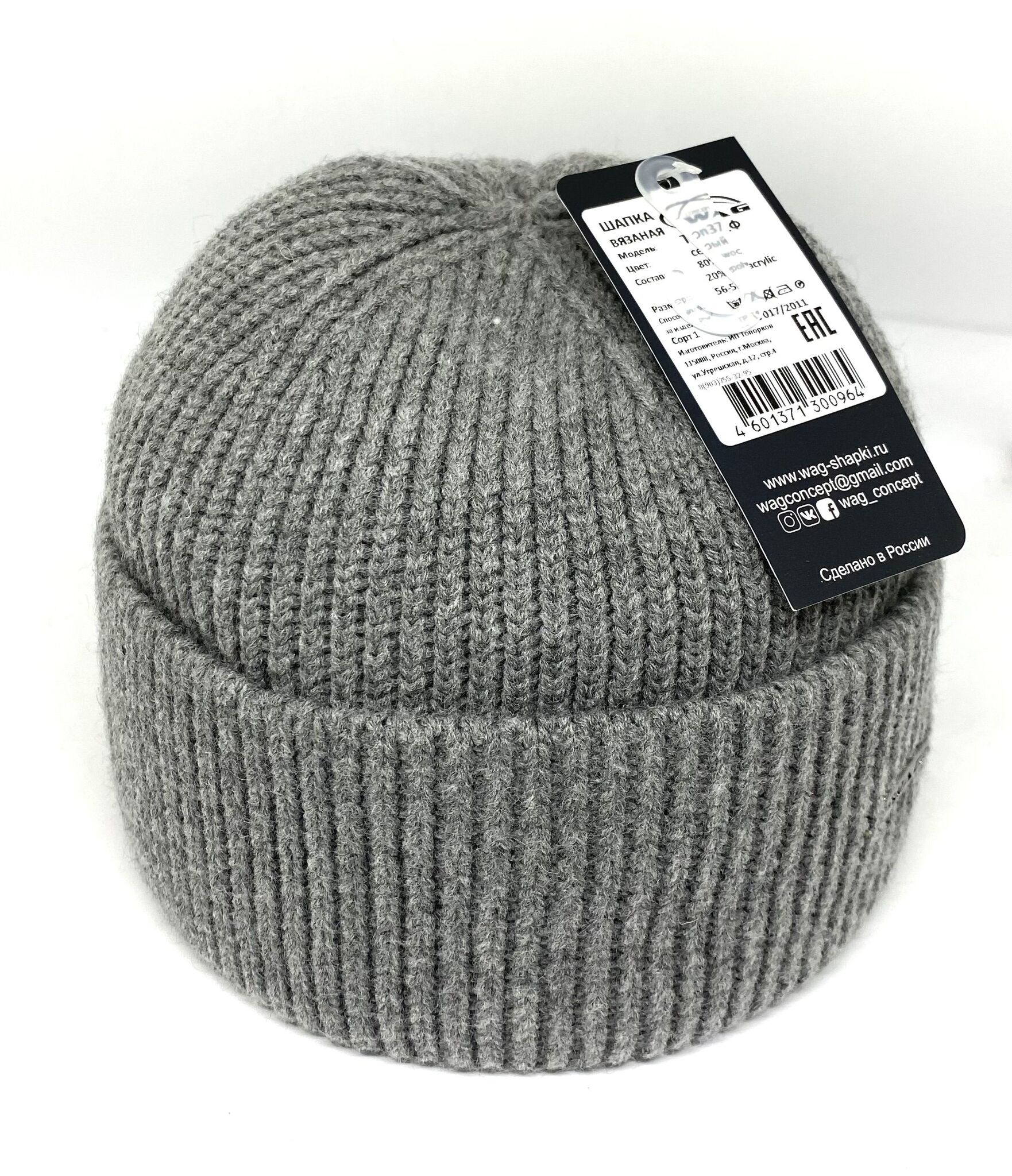 Мужская стильная шапка классическая Wag по голове. Рельефная смешанная вязка из качественной шерсти, двойная с широким практичным отворотом. Металлический логотип фирмы Wag.